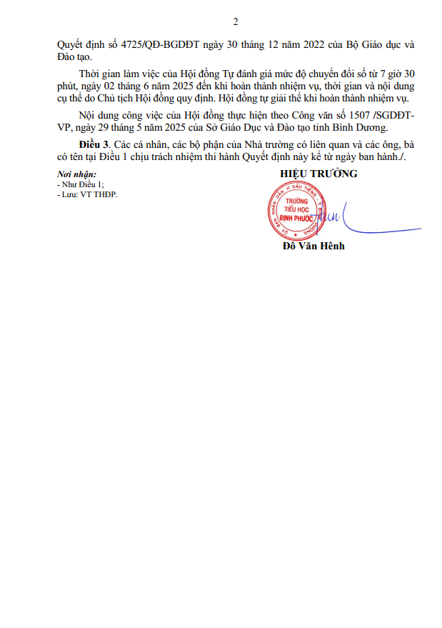 QĐ về việc thành lập Hội đồng tự đánh giá mức độ chuyển đổi số theo Bộ chỉ số đánh giá mức độ chuyển đổii số, Năm học 2024-2025